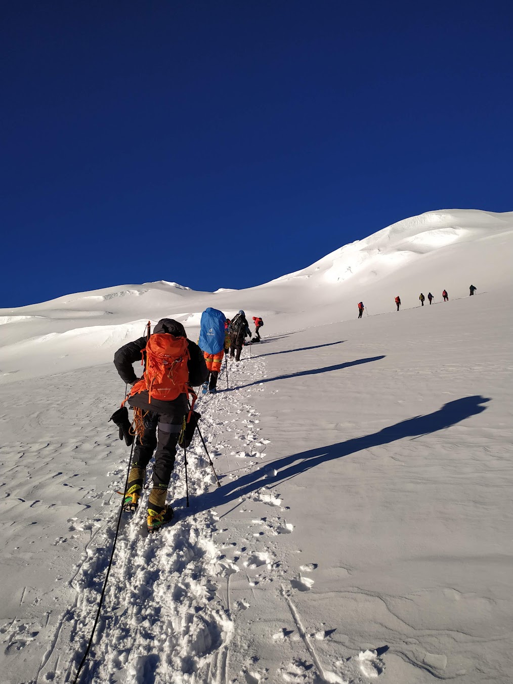 После преодоления моренных троп вы перейдете на ледовые и снежные альпинистские тропы, и хотя это не так сложно с технической точки зрения, альпинизм в высокогорных условиях — нелегкое дело.